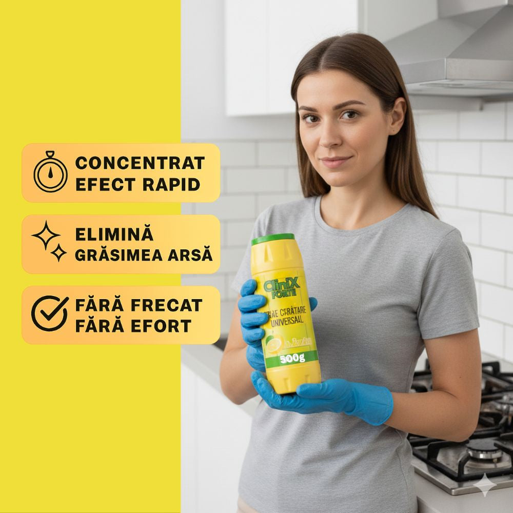 Putere Ultra-Degresantă: Dizolvă grăsimea veche, uleiul ars și funinginea de pe orice suprafață metalică sau ceramică.